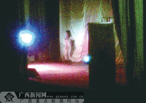 一名知情人介紹,該電影院里每一次演出持續約兩個小時。演出的前、中、后三個時段,都會有圍著絲巾的裸體女子在舞臺上亂舞,最后脫得一絲不掛,滿堂觀看的男子則連連發出怪叫。前幾天,該知情人把她費盡周折偷拍到的一女子裸體跳舞的照片提供給記者。照片顯示,上次演出即將結束時是當晚11時,那是最后一個節目,一名年輕女子光溜溜地出現在舞臺上……