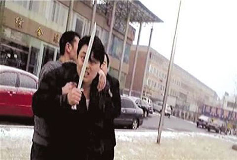 2月1日下午4點多,延慶縣城東外大街上,一名黑衣男子手持一把軍用刺刀在大街上搖搖晃晃,見人便追,周圍路人見狀無不四散躲閃。該男子進入臨街一大院內,用刺刀連砍十幾輛自行車,兀自大喊大叫。