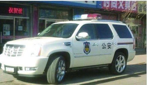 2月5日,天涯網(wǎng)友“A I我是傳奇”發(fā)帖,貼出一組牌照為“蒙G 0366警”的凱迪拉克SU V警車。從照片看,這輛車與警車毫無二致,車身噴涂、車頂警燈、警車車牌應(yīng)有盡有。發(fā)帖網(wǎng)友稱是在一個(gè)“人口不過幾千”的縣城拍攝到的,懷疑它是當(dāng)?shù)毓簿志珠L(zhǎng)的座駕。從其車牌蒙G,網(wǎng)友很快查出這應(yīng)該是內(nèi)蒙古通遼市的車。