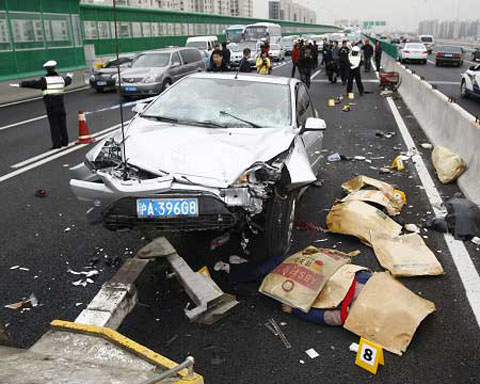 女子駕車撞進工地致2死8傷 疑為在校大學生(圖)