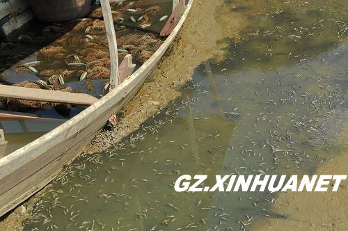2010年2月23日,位于黔西南布依族苗族自治州的馬鈴口水庫已完全干枯見底,大量死魚漂浮在庫底。新華社記者 劉續 攝