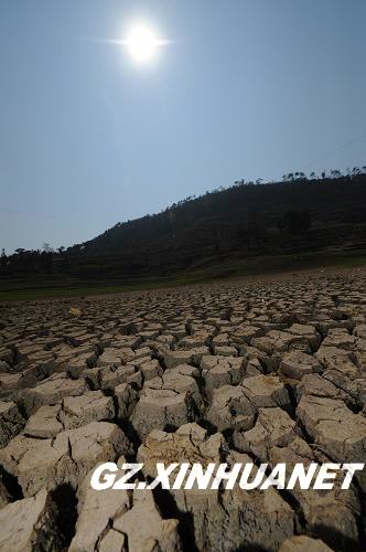 2010年2月23日,位于黔西南布依族苗族自治州的馬鈴口水庫已完全干枯見底,庫底的淤泥已經板結龜裂。新華社記者 劉續 攝