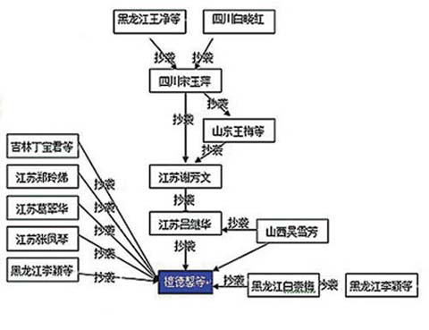 有了最初的發現之后,“中大學子”從幾名涉嫌抄襲的醫生入手開始調查,結果發現,廣西柳州市第一人民醫院檀德馨和浙江省平陽礬礦醫院潘芝芬發表在《中國實用婦科與產科雜志》1997年第13卷第6期的《刮宮術后宮腔粘連185例分析》一文(以下簡稱“檀文”),遭到16個單位25人的6輪抄襲,形成了一起“連環抄襲案”。