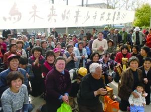 綢繆精細化工園南邊的另一個出口聚集了更多的村民。長長的白色橫幅上,寫著“為未來的青少年求生著想”。見記者到來,村民齊刷刷地下跪哭訴,在人群最前排,還有一位白發蒼蒼的老人。見此情景,記者手指顫抖,照相機快門遲遲按不下去。