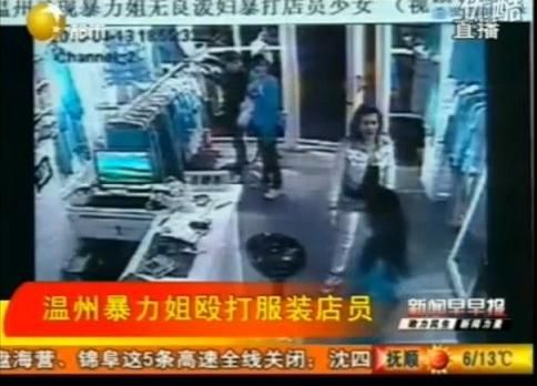 據(jù)浙江電臺(tái)報(bào)道,因?yàn)閼岩墒謾C(jī)被服裝店女店員偷了,龍灣區(qū)一王姓婦女不問青紅皂白,竟然在短短4分鐘內(nèi)狂扇女店員17記耳光。相關(guān)視頻被眾多網(wǎng)站、論壇轉(zhuǎn)載后,引起了廣大網(wǎng)友的一致憤慨。記者今天從龍灣警方了解到,當(dāng)?shù)鼐浇裉鞂?duì)這名被網(wǎng)友戲稱為"暴力姐"的王某做出了治安拘留8天,并處罰款500元,