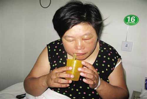 衛小定的臉部仍然浮腫,只能吸食流質