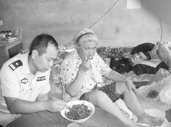 民警15年堅持救助流浪女 親自給老太太洗澡(圖)