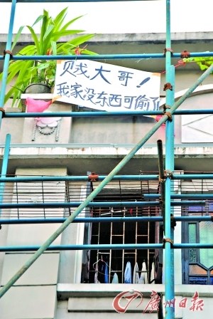 廣州日報訊 “賊大哥,我家沒東西可偷了!”昨天下午,廣州上下九一臨街建筑上突然出現這樣一個“雷人”標語牌,引得路人議論紛紛。