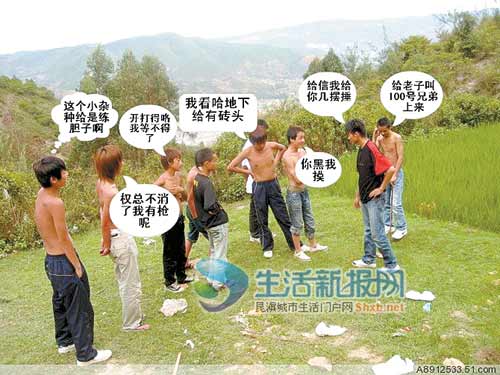 敲詐團伙網上發帖宣傳實力 擺出各種造型(圖)