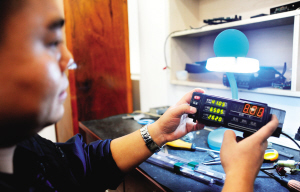 圖為計價器檢定站工作人員在調整計價器的起步價。實習生 張志紅 貴陽日報記者 劉輝 攝