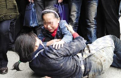 資料圖:看著被打倒在地的媽媽,幼女痛哭失聲。