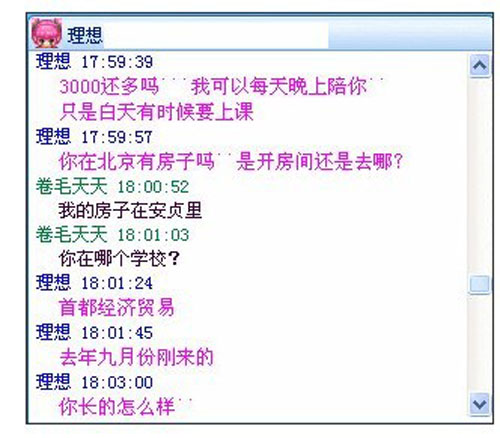 網曝女大學生包養價格表 稱2萬元就能包女大生