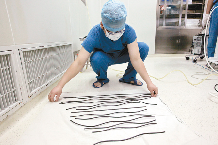 “傷者王濤被送進(jìn)急救室時(shí),經(jīng)初步診斷,大腸被穿破2個(gè)孔,小腸被穿破4個(gè)孔,膀胱被穿破5個(gè)孔,而且傷口污染情況很嚴(yán)重”。陳紹洋主任說(shuō),面對(duì)王濤這種罕見(jiàn)的危重患者,醫(yī)院領(lǐng)導(dǎo)立即組織麻醉科、骨科、泌尿科、普外科等9個(gè)科室的專家和教授一起會(huì)診、協(xié)力手術(shù),從2日23時(shí)開(kāi)始進(jìn)行手術(shù),到次日凌晨3時(shí),經(jīng)過(guò)9科室,40多名醫(yī)護(hù)人員緊張施救,終于將王濤體內(nèi)的13根鋼筋一一拔出。