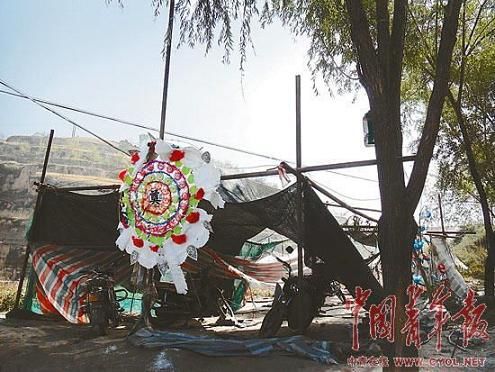 資料圖:護礦的帳篷成了村民郝兔照的靈堂。