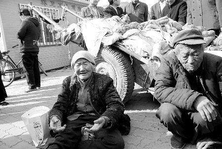 張全會的驢車一次能拉八九百斤紅薯、胡蘿卜和芋頭,賣五六百元。11月8日中午12時(shí),他們趕著毛驢車從老家出發(fā),晚上8時(shí)多才到鄭州,就在附近樓檐下睡。“我們倆都76歲了,自己種地自己收,還要拉到鄭州賣。我們這么做,都是為了癱瘓兩年的大兒子。”