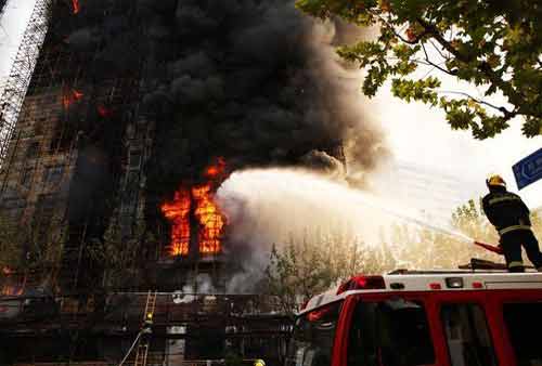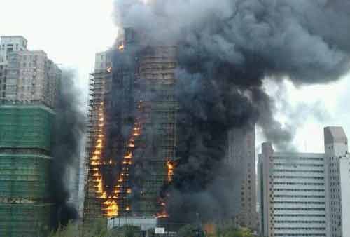 11月15日14時,上海余姚路膠州路一棟正在進行外立面墻壁施工的高層住宅腳手架忽然起火,火勢較大