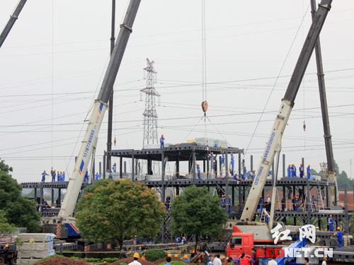 記者找到了這座6天完工的“新方舟賓館”的資料,該賓館位于湖南省的長沙市。據長沙電視新聞網報道,這座建筑在今年6月就已竣工,它的整體搭建使用了46個小時,裝修用時90個小時。報道還稱,該樓盤的“模塊化建筑技術”是獨創科技,建筑過程不但高效、節能、凈化,樓盤的抗震能力更可以達到9級。