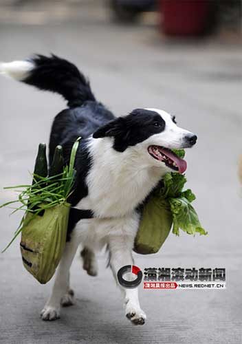 寵物狗陪主人買菜當挑夫 成菜市場明星(圖)