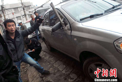 12月8日,云南昆明市西山區一在建樓盤旁的道路上,一鋼管從地底突然“長出”,直直插穿一輛正在行駛汽車的副駕駛室,所幸無人受傷,事故原因尚不清楚。據坐在副駕位上的市民付女士回憶:“鋼管從自己旁邊穿過,如果稍微偏幾尺自己就危險了。”圖為驚魂未定的車主在講述事發時的情況。