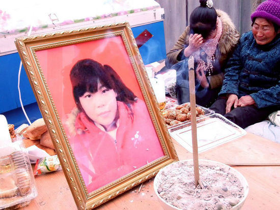 在事故中,14歲的受害者楊園美的家人在她靈堂前痛哭。