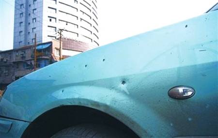資料圖:11月26日,武漢街頭不明物體爆炸,一輛出租車遭“彈片”擊中。