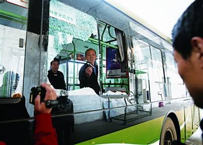 資料圖:11月26日,武漢街頭不明物體爆炸,一輛公交車受損,圖為公交車司機在查看受損情況。記者石一 攝