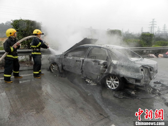 廣西南寧小車雨天打滑起火 一死5傷