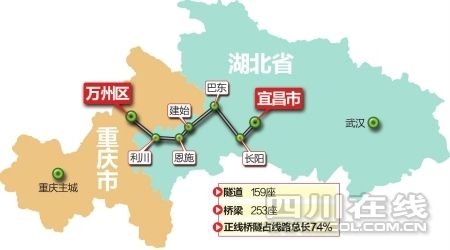 據(jù)了解,宜萬鐵路宜昌東至涼霧段288公里一次建成復(fù)線,設(shè)計(jì)時(shí)速160公里,最高可達(dá)200公里;涼霧至萬州段89公里為單線,設(shè)計(jì)時(shí)速120公里。