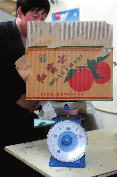 京華時報消息 據中央電視臺報道,在北京東郊水果批發市場和新發地農產品批發市場,普遍存在一種“重量級包裝”:一些商販為牟取不正當利益,在包裝蘋果的紙箱夾層內灌入水泥以增加重量,一個紙箱凈重能達五六斤。本報記者走訪發現,在新發地市場,使用這樣的“水泥紙箱”已然成了潛規則。多名蘋果批發商稱,大家都是這么操作的,只有這樣才能掙到錢。而且,“這早已不是新聞”。