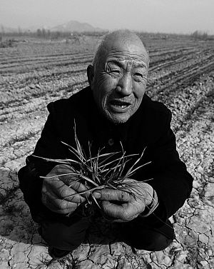 就在南方諸省經受凍雨襲擊之時,山東正在經受另一場災難的侵襲干旱。從2010年9月23日至今,全省除半島東北部以外120多天無有效降雨。1月7日,在全省抗旱視頻工作會議上,省水文局表示,若春節前全省無有效降水,全省氣象干旱概率將達到60年一遇,棗莊、泰安、萊蕪、臨沂、日照、聊城將達到100年一遇,菏澤、濟寧將達到200年一遇。目前全省已超過50年一遇大旱。時下的山東到底有多旱?用濟寧市曲阜吳村鎮白塔村72歲的劉興德老人的話說:“我活了70多歲,這樣的干旱經歷過三次,但這一次是最旱的,4個多月沒下一滴雨!”