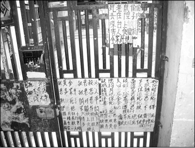 樓上住戶拋物 樓下住戶貼詛咒告示引非議(圖)