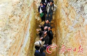昨日,專家們到廣從斷裂帶西淋崗滑坡現場考察。記者駱昌威 攝