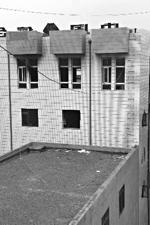 一些人為了逃生,從五樓跳往一棟三層樓樓頂。