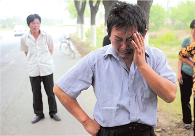 小鵬父親在事發(fā)地附近悲傷痛哭。記者朱嘉磊攝