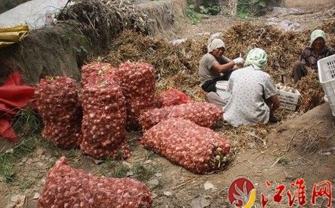 江淮網特約記者:毛科宇 攝 在內地,曾一度貴過豬肉價格的大蒜如今身價卻一落千丈。相關經濟統計數據表明,2010年大蒜批發價每噸9000至9200元,出口價每噸一萬多元。與之相比,今年同期一噸大蒜的批發價大約為2000至2800元人民幣,價格下滑近七至八成�!八饽愫荨弊兩怼八饽阗v”�! �