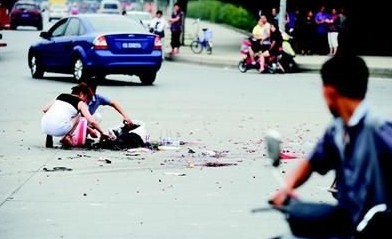 隨后,交警趕到現場進行處理。肇事司機是一名身著白色T恤的小伙子,20余歲。面對交警的問話,他半躬著身子,止不住地流淚。