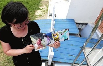 胡女士在女兒出事的地點,舉著女兒的照片和女兒“說話”。本報記者楊天嘯攝