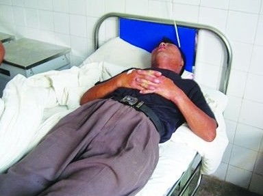 受傷的老人躺在醫院床上。