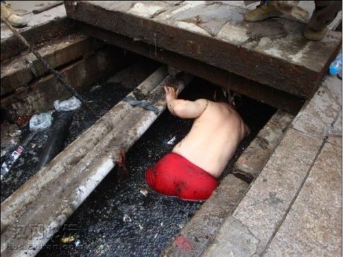 維修人員裸身跳臭水溝修電纜感動網友(組圖)