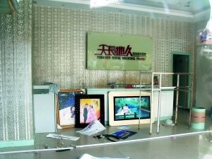 “鳳崗天長地久”店內一片狼藉。