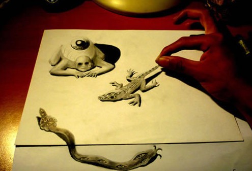 藝術家用鉛筆做3D畫 栩栩如生真假難辨(圖)