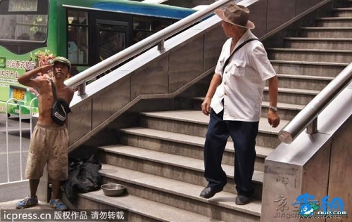 據貴網消息 2011年9月6日,遵義路有個很有意思的乞討者,敬禮乞討,乞討成功后都會說一句“Thank you very much”�?芍^是“不走尋常路”。 記者隨后在遵義路國鼎家電門口的人行天橋處見到了這個乞討者。
