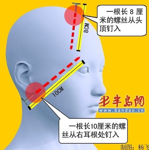 兩根長螺絲插進(jìn)孩子腦袋