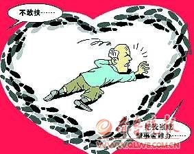9月12日,市民王女士給本報打來電話稱,9日清晨5時許,在西城嬉水公園,一老漢在晨練時突然摔倒在地,當(dāng)時現(xiàn)場有20余人圍觀,卻沒有一人伸手幫助。事發(fā)十余分鐘后,一名晨練至此的醫(yī)生看到這一情況后立刻對老人進(jìn)行了施救,隨后該醫(yī)生還請路人撥打了120,由急救人員將老人帶回了醫(yī)院。