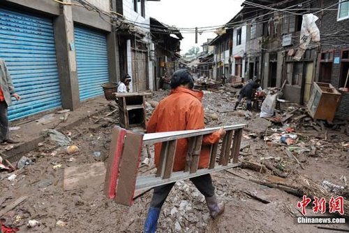 9月21日,四川洪災(zāi)重災(zāi)區(qū)達(dá)縣橋?yàn)赤l(xiāng)民眾開始對(duì)街道、店鋪、學(xué)校等進(jìn)行全面清淤處理,生產(chǎn)生活陸續(xù)恢復(fù)。四川達(dá)縣橋?yàn)赤l(xiāng)處于巴河沿岸,此前遭受到了歷史上最大的一次洪水襲擊,洪水給當(dāng)?shù)孛癖妿砹藨K重?fù)p失。中新社發(fā) 張浪 攝