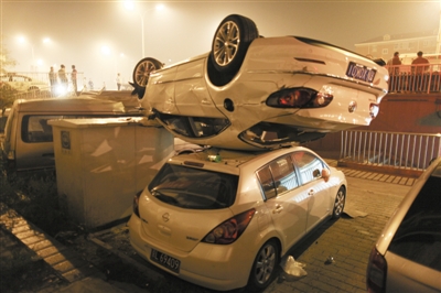 “簡直就是飛車。”昨日凌晨3時20分,薊門橋西北角,一白色大眾CC轎車沖到橋下,四腳朝天倒扣在另一輛轎車頂部。據稱,車內共載7人,兩名女大學生受輕傷被急救車拉走,橋下停靠的四輛車被砸。交警初步認定,事故主要原因是拐彎時車速過快,肇事車負全責。