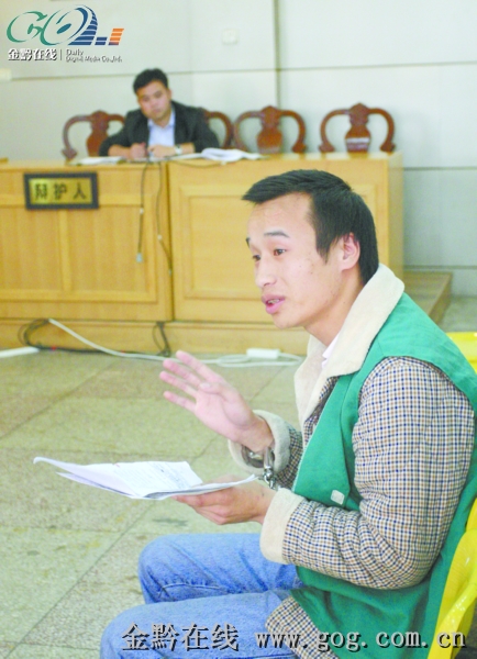 昨日上午,曾經盜竊被判過刑的被告李海江(六盤水人,1986年生)在法警的押解下,坐到被告席上。庭審中,李海江對公訴機關的指控不持異議,但是談到殺傷致胡崗死亡的細節,被告堅稱,作案的兇器不是自己的,是胡崗用刀來殺他,他是“奪刀自衛”。