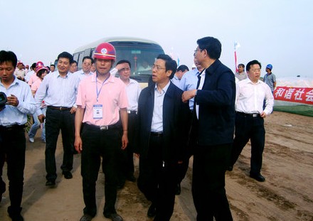 項目經理王臘(右三)陪同山西省副省長牛仁亮(右二)、晉中市副市長暢志任(左二)蒞臨龍城高速公路項目第七合同段檢查指導工作