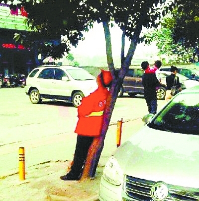 "靠樹打盹"環衛工引關注 網友稱心酸感動(圖)