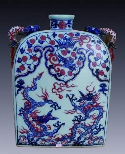 據了解,此次所拍賣的藝術藏品中,既有宋、元、明、清等年代久遠、價值不菲的重器,如元青花釉里紅龍紋四系扁瓶,宋天青釉香薰碗等,也有適宜普通老百姓選購的掛件、把件、擺件、配飾。書畫方面有齊白石、八大山人、趙少昂等的作品,更多的則是當代藝術家創作。